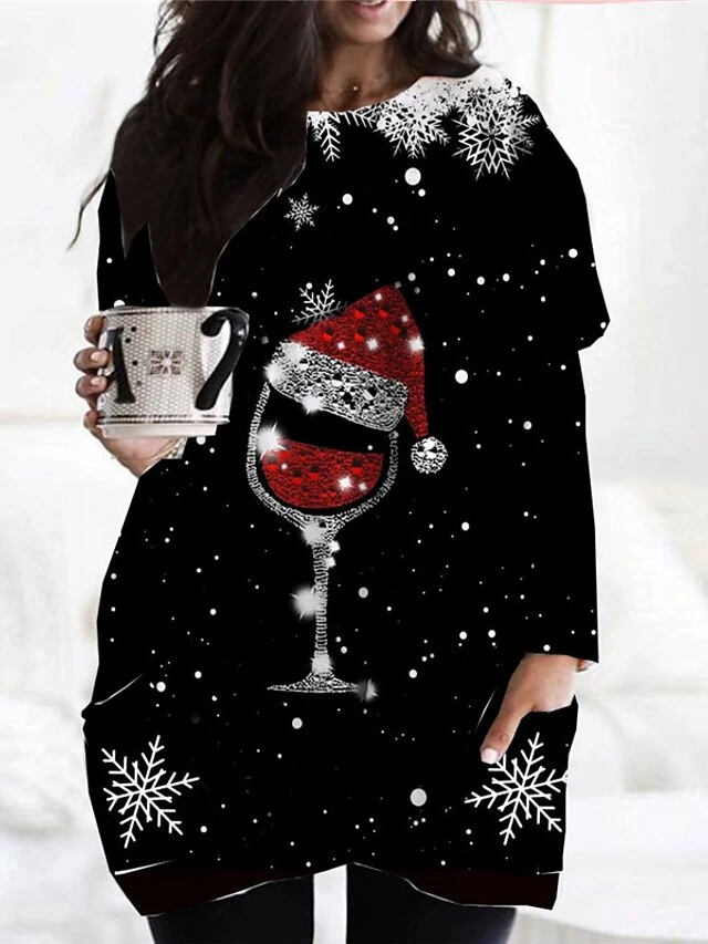 Women‘s Plus Size Christmas Dress Casual Dress Cat Long Sleeve Winter Fall Casual Festival Mini Dress Going Out Dress