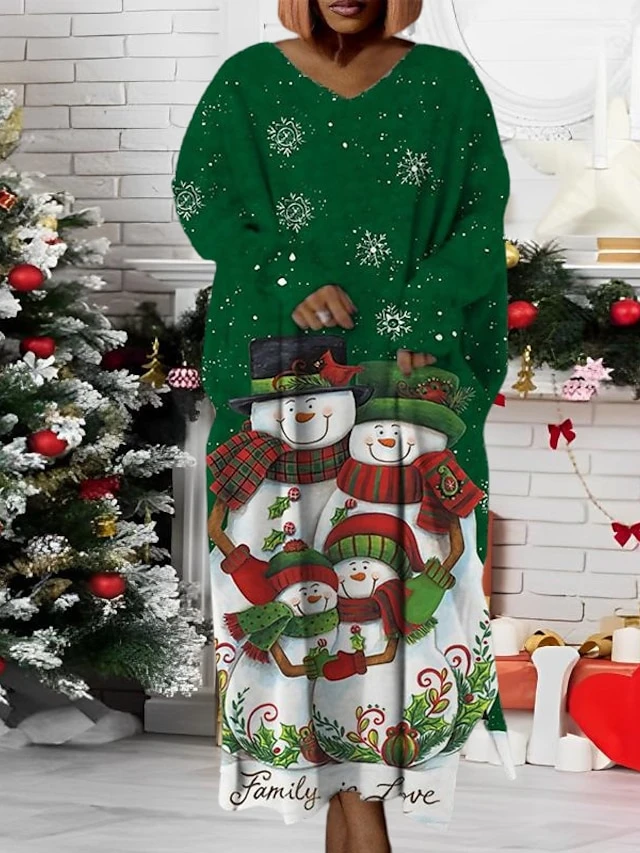 Women‘s Plus Size Christmas Dress Santa Claus V Neck Long Sleeve Winter Fall Modern Maxi Long Dress Daily Dress
