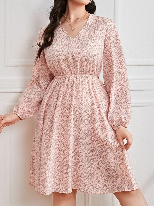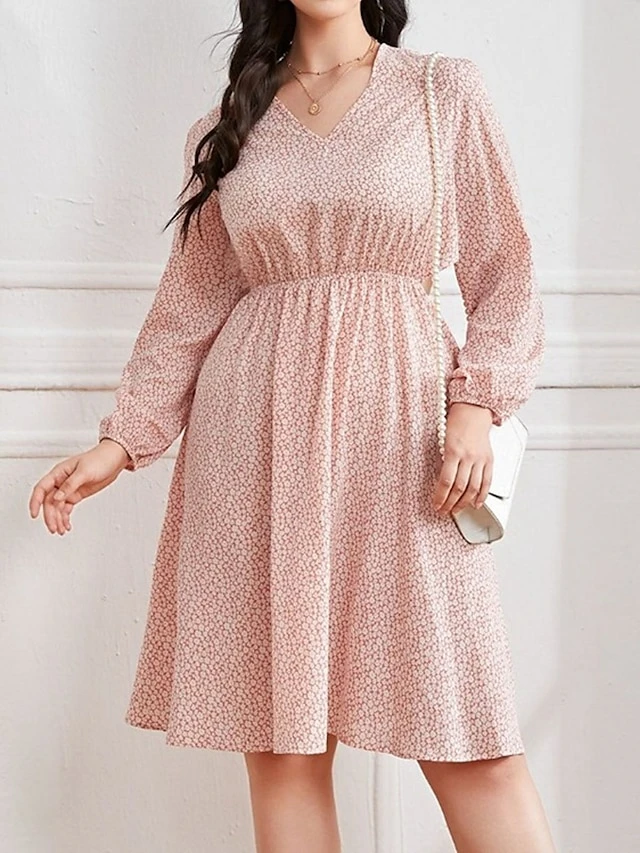 Women’s Plus Size Curve Casual Dress Chiffon Dress A Line Dress Floral Midi Dress Long Sleeve Print V Neck Fashion Daily Pink Fall Winter L XL XXL 3XL 4XL