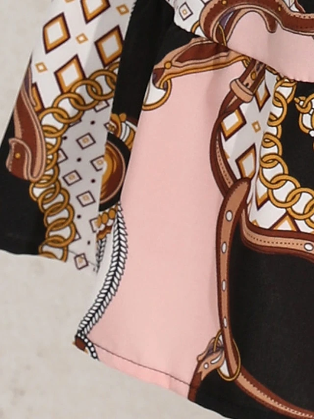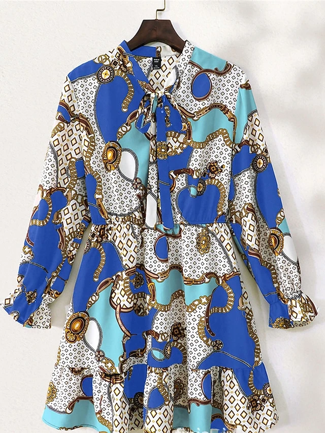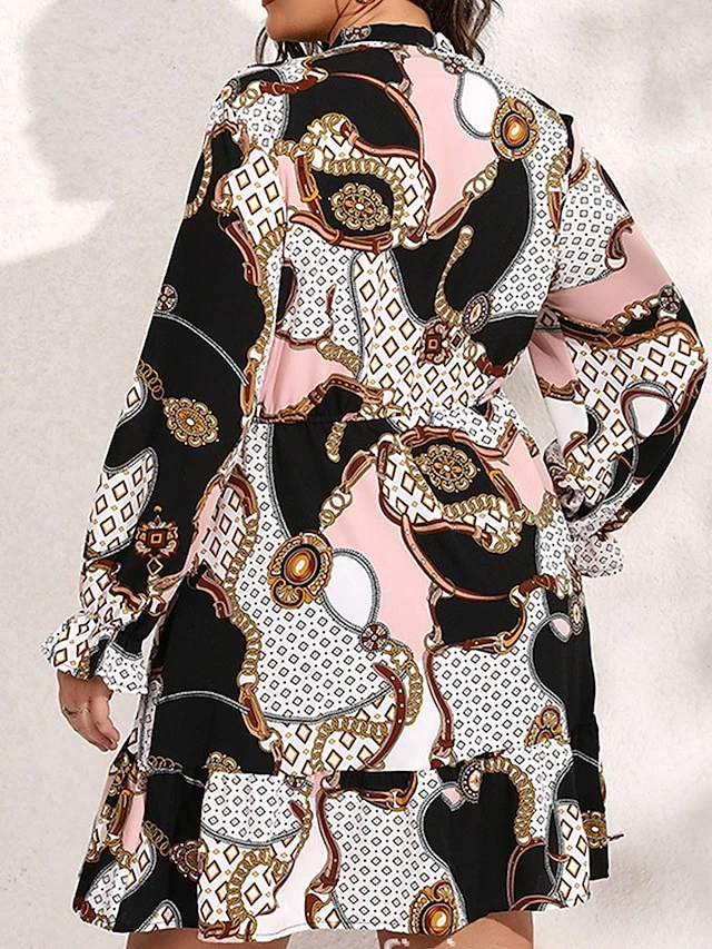 Women’s Plus Size Curve Casual Dress Chiffon Dress A Line Dress Geometric Color Block Midi Dress Long Sleeve Lace Up Print Stand Collar Fashion Daily Pink Blue Fall Winter L XL XXL 3XL 4XL