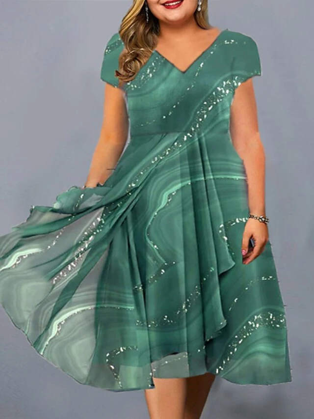 Women‘s Plus Size Curve Casual Dress Color Gradient V Neck Short Sleeve Spring Fall Casual Midi Dress Daily Vacation Dress