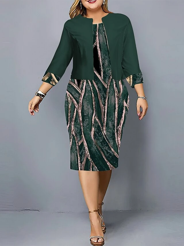 Women’s Plus Size Curve Casual Dress Dress Set Two Piece Dress Floral Midi Dress Long Sleeve Print Crew Neck Fashion Outdoor Black Wine Fall Winter L XL XXL 3XL 4XL