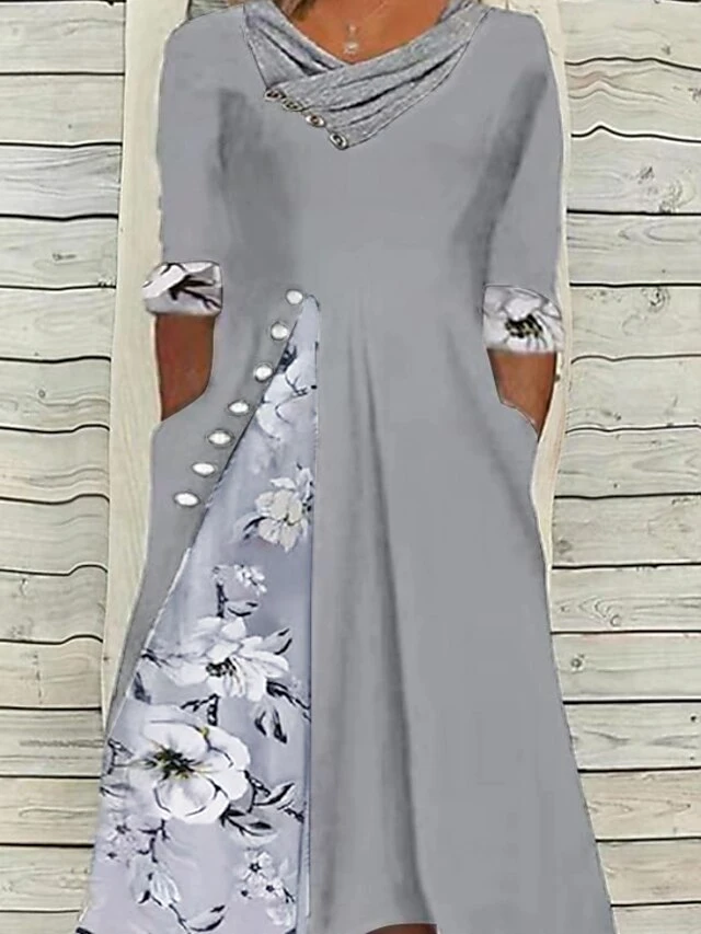 Women‘s Plus Size Curve Casual Dress Floral V Neck Print 3 4 Length Sleeve Spring Fall Casual Midi Dress Casual Daily Dress