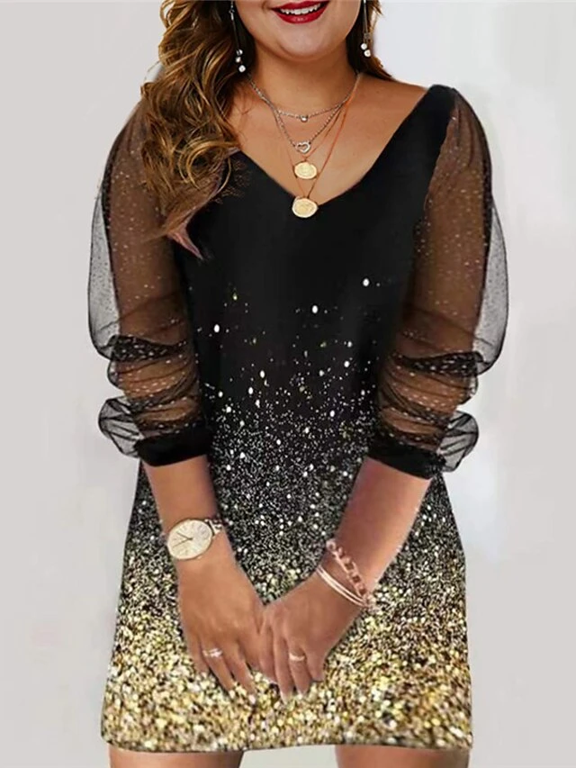 Women‘s Plus Size Curve Casual Dress Heart V Neck Long Sleeve Fall Spring Casual Mini Dress Daily Vacation Dress