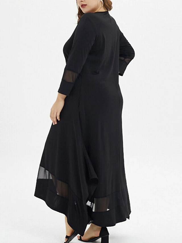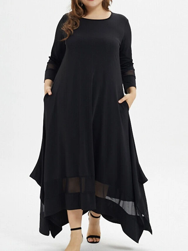 Women‘s Plus Size Curve Casual Dress Pure Color Crew Neck 3/4 Length Sleeve Spring Fall Casual Maxi Long Dress Daily Vacation Dress Black Dress