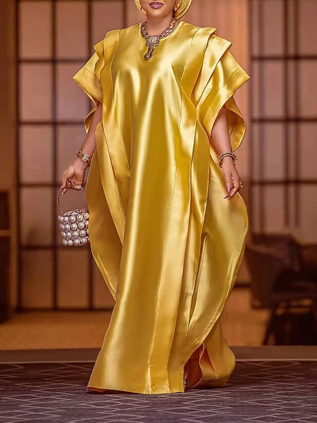 Women‘s Plus Size Curve Casual Dress Shift Dress Kaftan Dress Solid Color Long Dress Maxi Dress Half Sleeve Ruffle Crew Neck Elegant Vacation White Yellow Summer Spring One Size