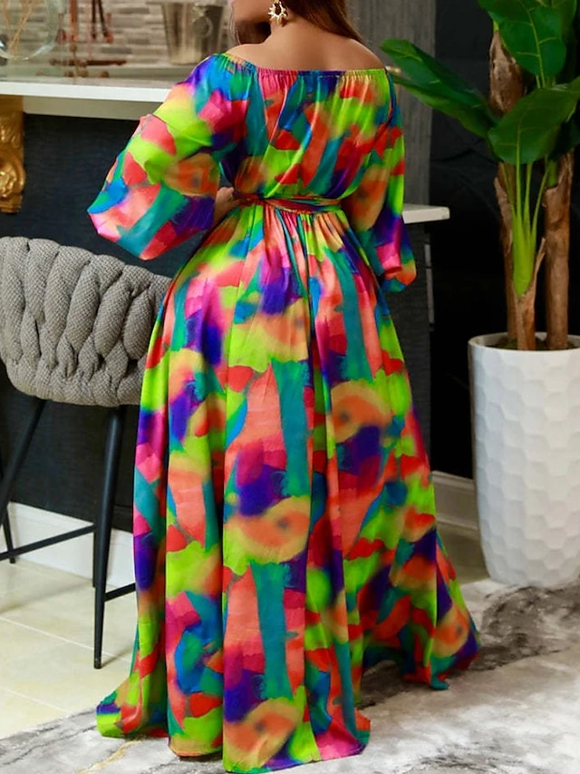 Women‘s Plus Size Curve Casual Dress Swing Dress Graphic Long Dress Maxi Dress Long Sleeve Lace Up Backless Off Shoulder Fashion Holiday Green Summer Spring L XL XXL 3XL