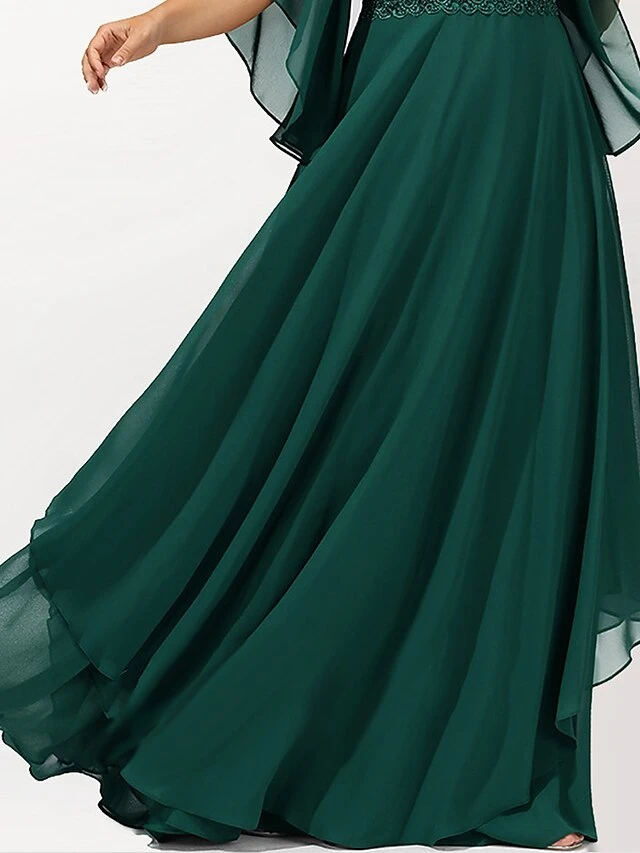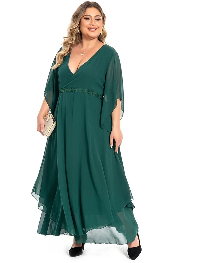 Women‘s Plus Size Curve Casual Dress Swing Dress Plain Long Dress Maxi Dress 3/4 Length Sleeve Layered V Neck Basic Outdoor Dark Green Summer Spring L XL XXL 3XL 4XL