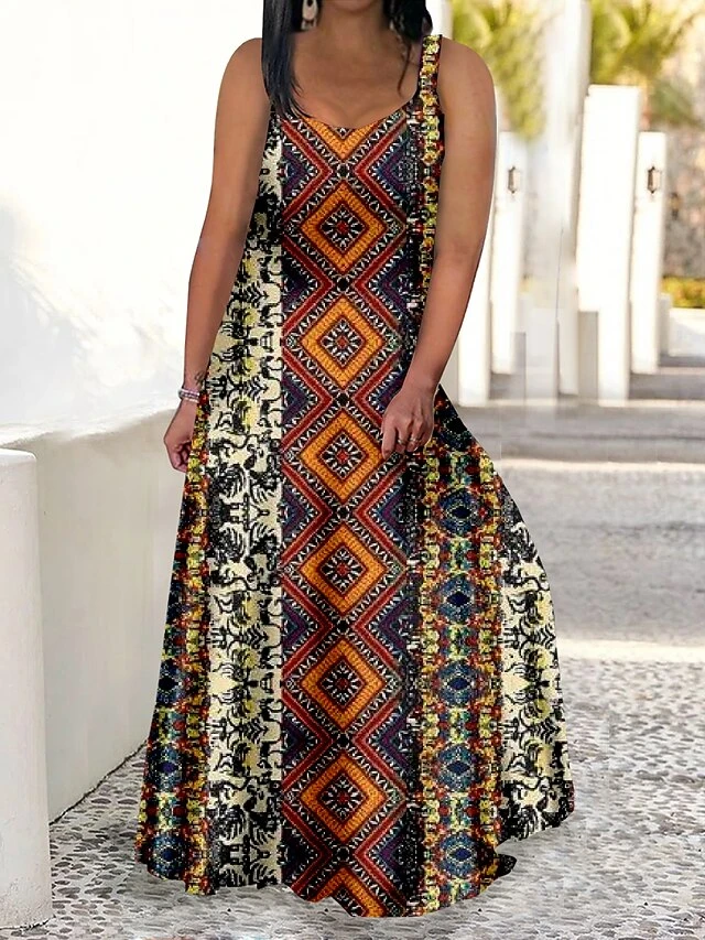 Women‘s Plus Size Curve Casual Dress Swing Dress Strap Dress Graphic Floral Long Dress Maxi Dress Sleeveless Print Strap Romantic Daily Yellow Red Summer Spring L XL XXL 3XL 4XL