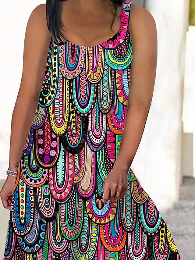 Women‘s Plus Size Curve Casual Dress Swing Dress Strap Dress Graphic Long Dress Maxi Dress Sleeveless Print Strap Romantic Daily Purple Summer Spring L XL XXL 3XL 4XL