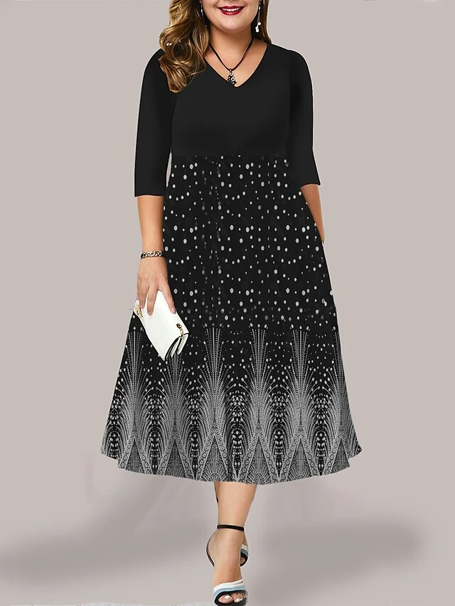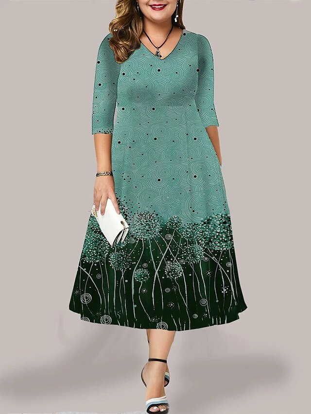 Women’s Plus Size Curve Casual Dress Work Dress Swing Dress Floral Long Dress Maxi Dress 3/4 Length Sleeve Pocket Print V Neck Fashion Outdoor Black Blue Fall Winter L XL XXL 3XL 4XL