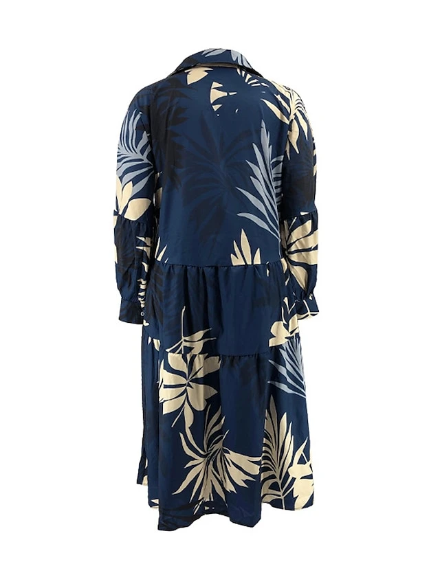 Women‘s Plus Size Curve Denim Dress Casual Dress Swing Dress Leaf Midi Dress Long Sleeve Button Print Shirt Collar Fashion Daily White Blue Fall Spring XL XXL 3XL 4XL 5XL