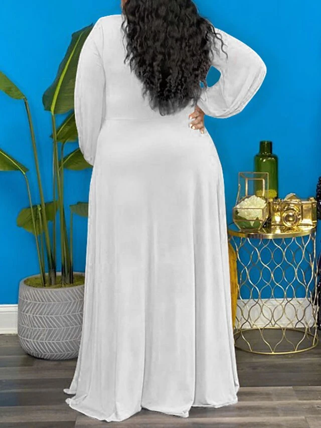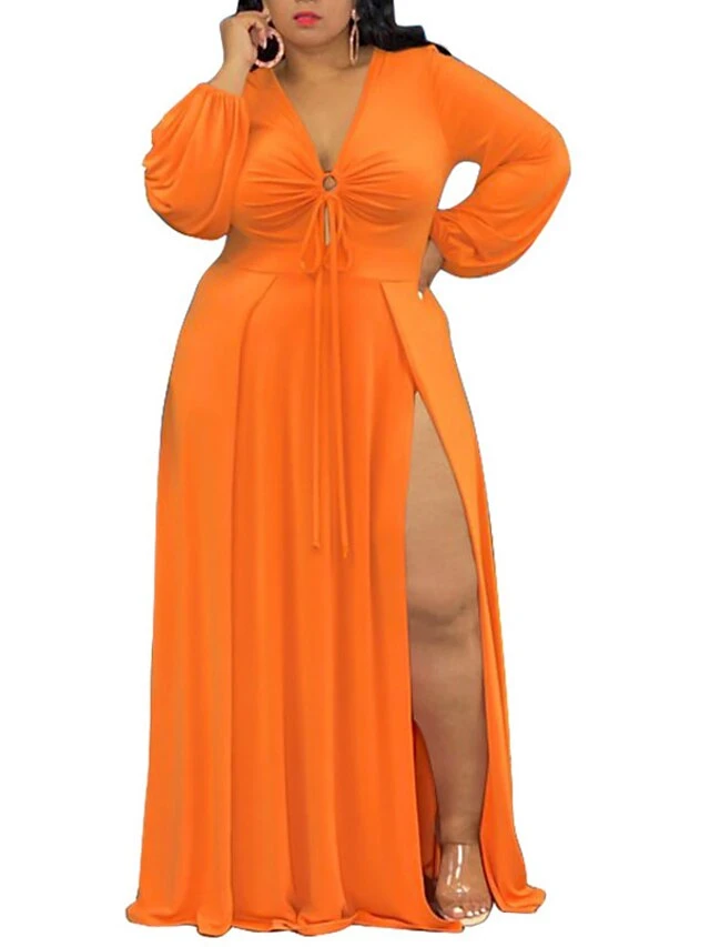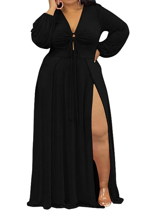 Women‘s Plus Size Curve Easter Dress Party Dress Solid Color V Neck Split Long Sleeve Fall Spring Dress Work Prom Dress Maxi Dress Party Vacation Dress