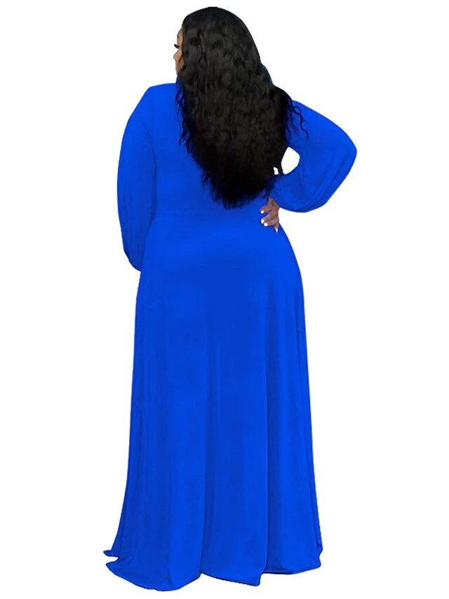 Women‘s Plus Size Curve Easter Dress V Neck Vacation Dress Solid Color Long Sleeve Winter Fall Stylish Casual Maxi Dress Holiday Date Dress Black Dress