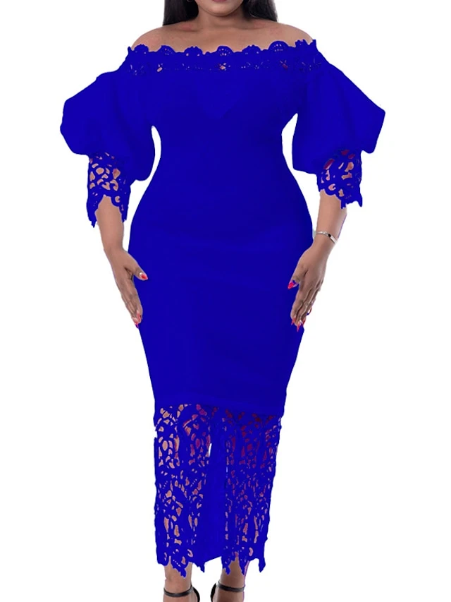 Women‘s Plus Size Curve Flattering Dresses Elegant Apple Shaped Dress Wedding Guest Off Shoulder Lace Party Dress Solid Color Half Sleeve Fall Spring Dress Prom Dress Maxi Dress Party Dress