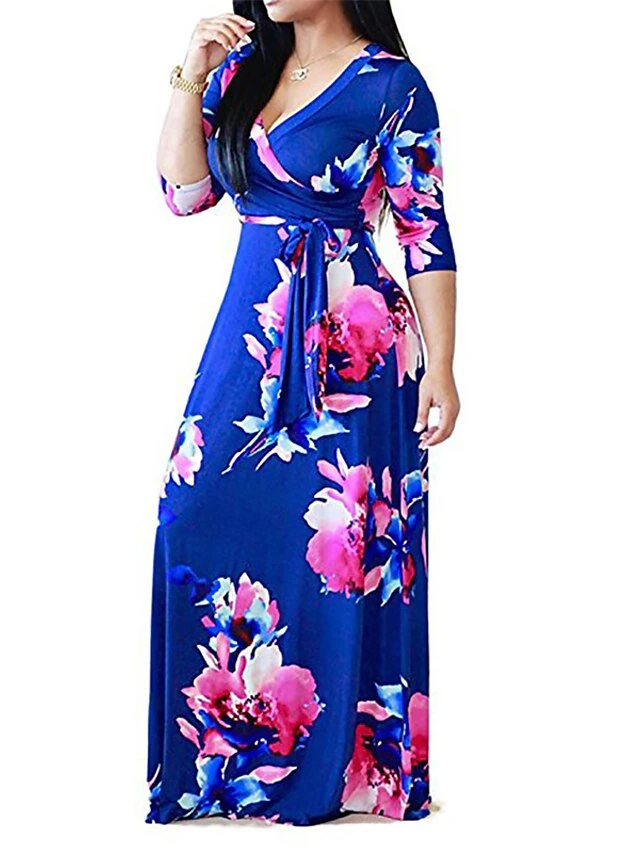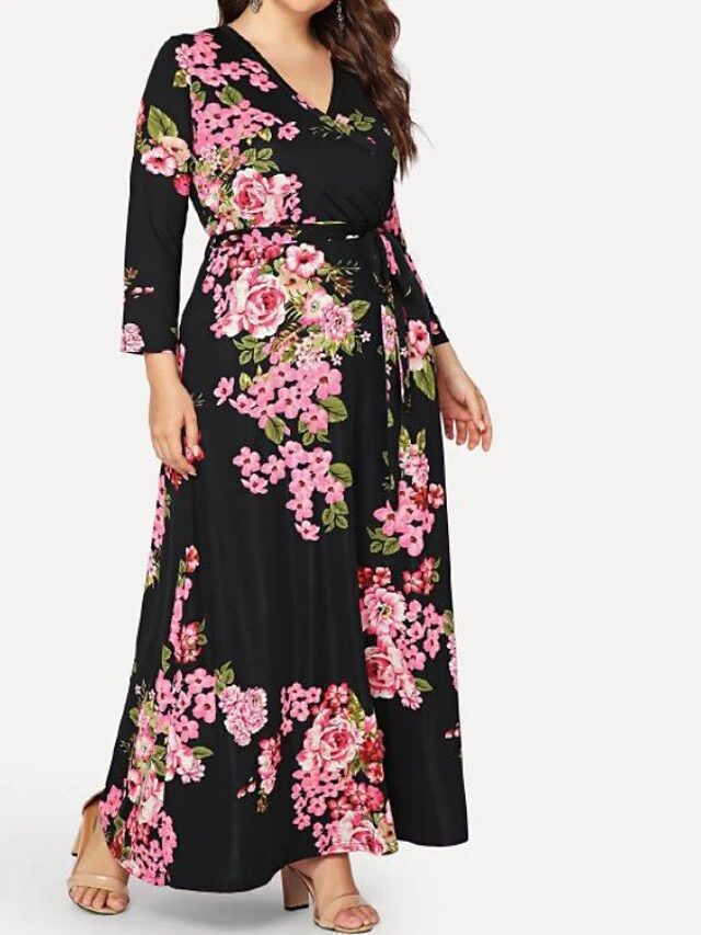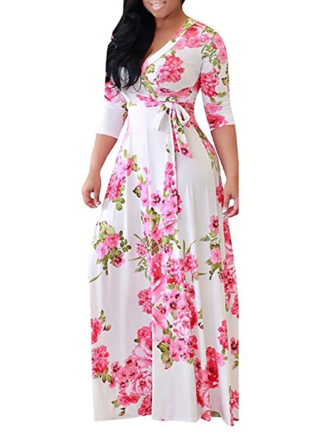 Women‘s Plus Size Curve Holiday Dress Floral V Neck Print Half Sleeve Fall Spring Casual Maxi Long Dress Casual Vacation Dress
