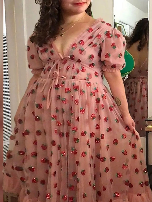 Women‘s Plus Size Curve Holiday Dress Print V Neck Print Half Sleeve Fall Spring Prom Dress Maxi Long Dress Party Daily Dress Graphic