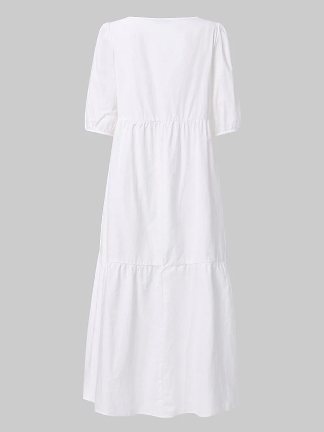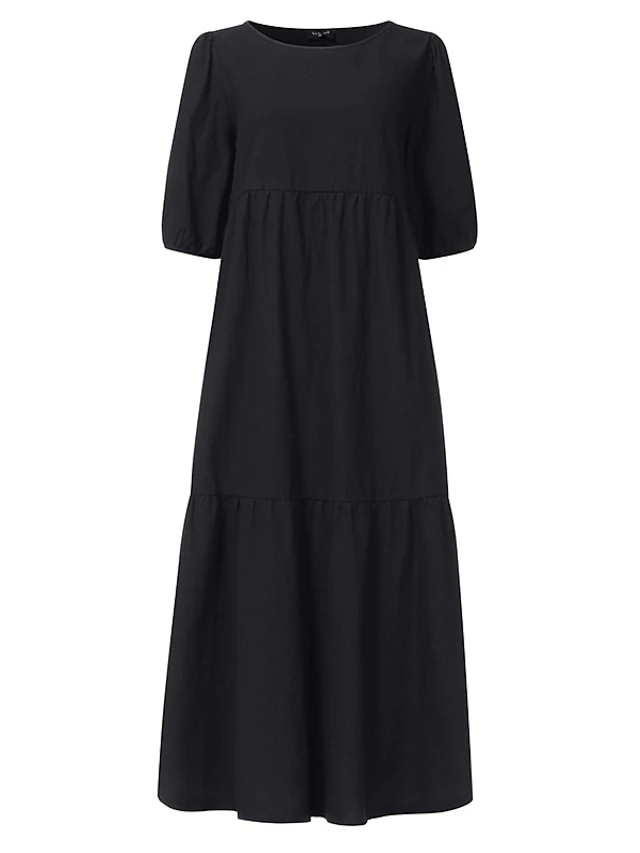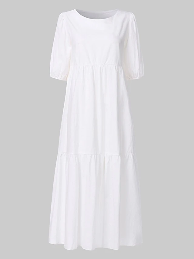 Women‘s Plus Size Curve Holiday Dress Solid Color Crew Neck Half Sleeve Fall Spring Casual Boho Maxi Long Dress Daily Vacation Dress Cotton