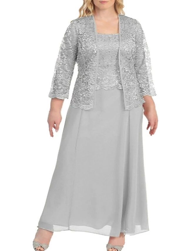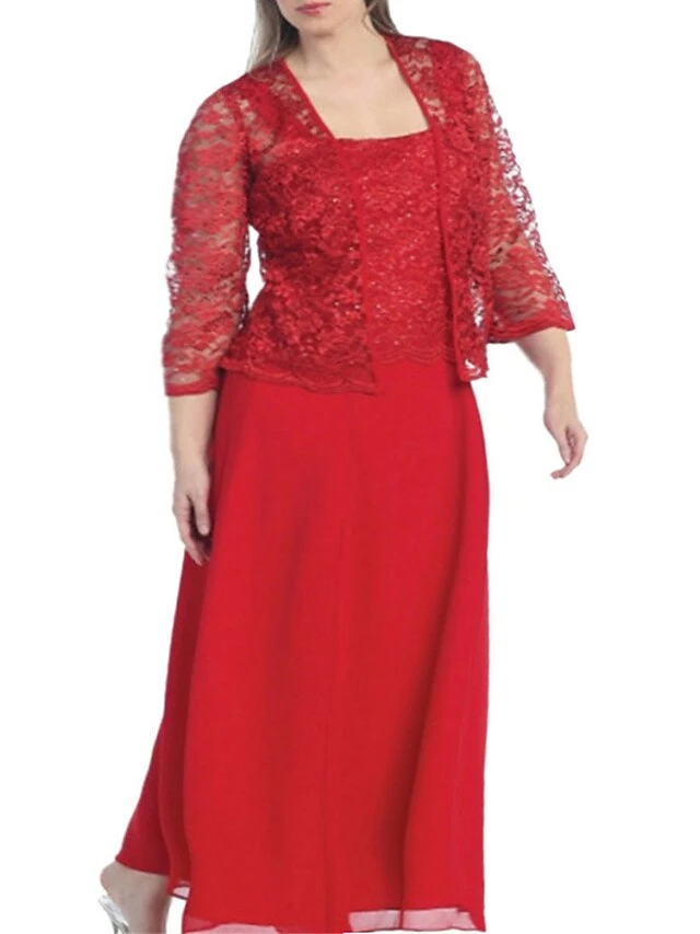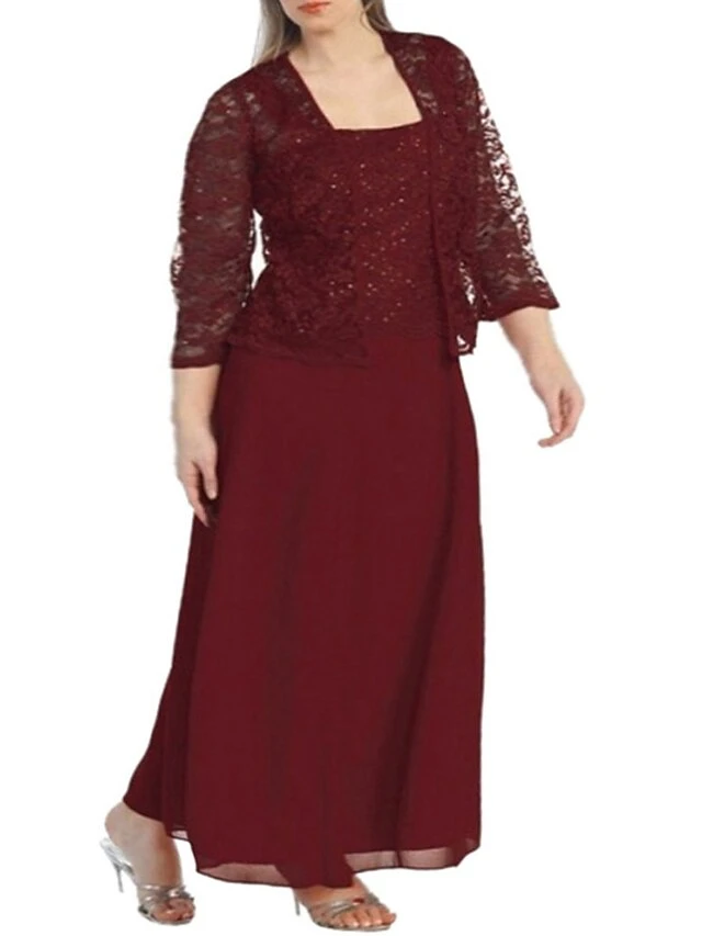 Women‘s Plus Size Curve Lace Dress Work Dress Dress Set Solid Color Long Dress Maxi Dress 3/4 Length Sleeve Lace Strap Elegant Office Black Wine Spring Summer L XL XXL 3XL 4XL