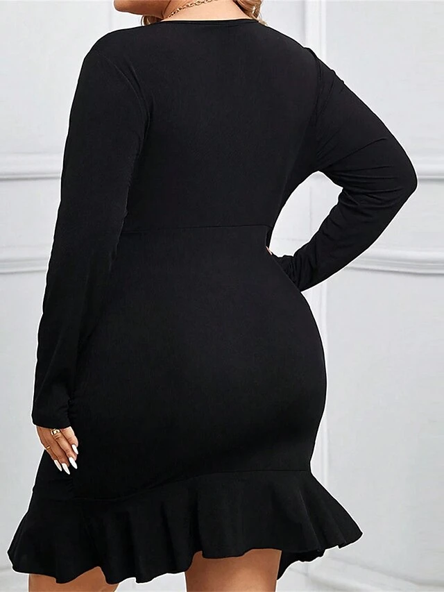 Women’s Plus Size Curve Party Dress Bodycon Sheath Dress Plain Midi Dress Long Sleeve Ruched Ruffle V Neck Fashion Party Black Fall Winter XL XXL 3XL