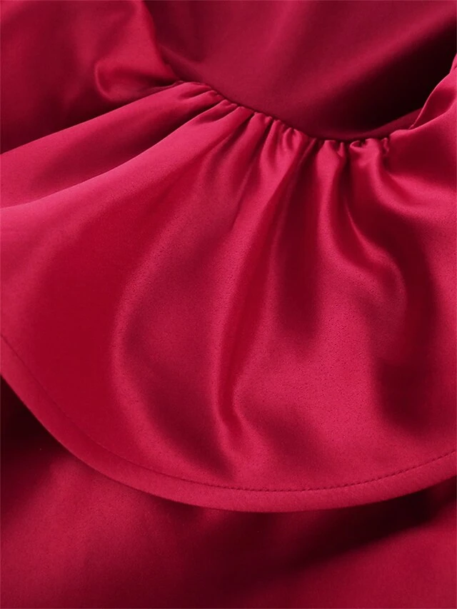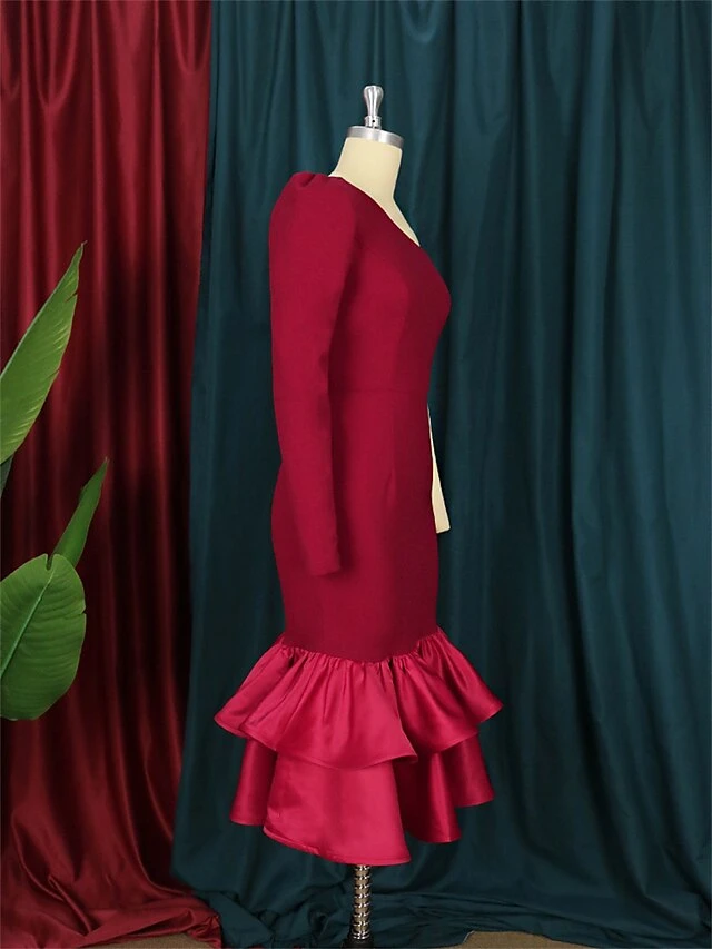 Women’s Plus Size Curve Party Dress Bodycon Sheath Dress Plain Midi Dress Long Sleeve Ruffle One Shoulder Fashion Party Wine Fall Winter XL XXL 3XL 4XL