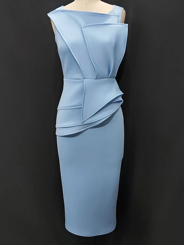 Women’s Plus Size Curve Party Dress Bodycon Sheath Dress Plain Midi Dress Sleeveless Ruffle Crew Neck Fashion Party Sky Blue Spring Fall XL XXL 3XL 4XL