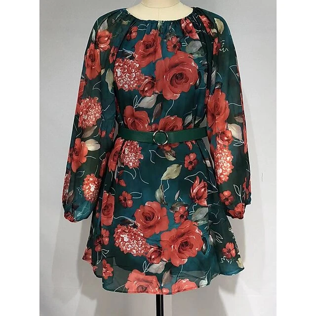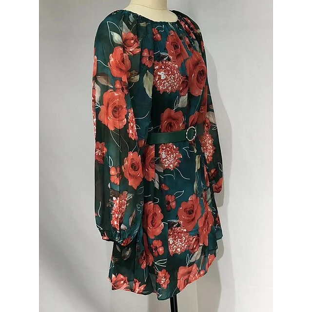 Women’s Plus Size Curve Party Dress Casual Dress Cocktail Dress Floral Midi Dress Long Sleeve Print Crew Neck Fashion Party Purple Green Fall Winter XL XXL 3XL