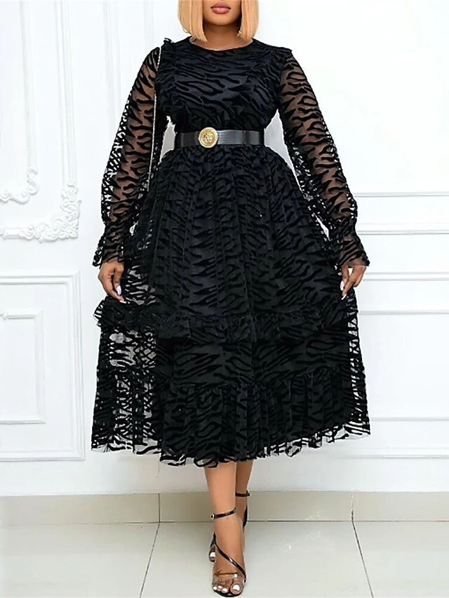 Women’s Plus Size Curve Party Dress Cocktail Dress Black Dress Solid Color Midi Dress Long Sleeve Ruched Ruffle Crew Neck Fashion Party Black Fall Winter L XL XXL 3XL