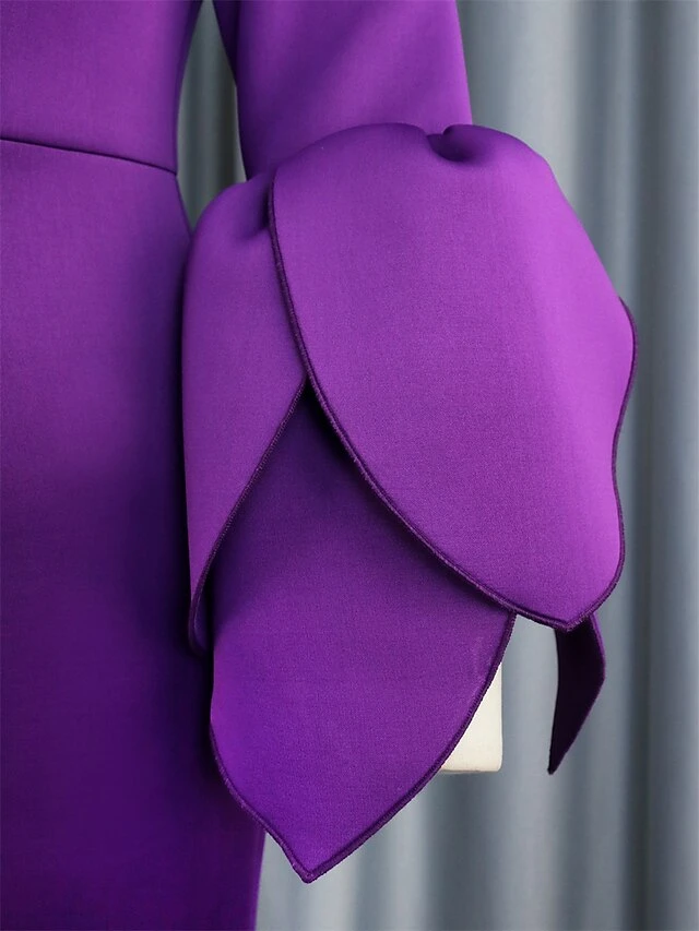 Women’s Plus Size Curve Party Dress Cocktail Dress Work Dress Plain Midi Dress Long Sleeve Crew Neck Fashion Party Purple Fall Winter XL XXL 3XL 4XL