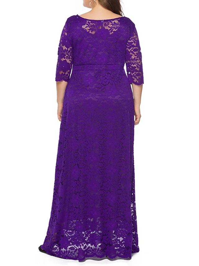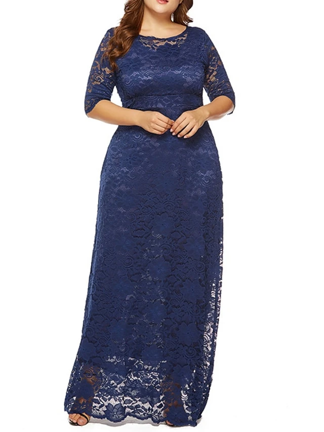 Women‘s Plus Size Curve Party Dress Floral Crew Neck Lace 3/4 Length Sleeve Spring Fall Work Prom Dress Maxi Long Dress Party Daily Dress