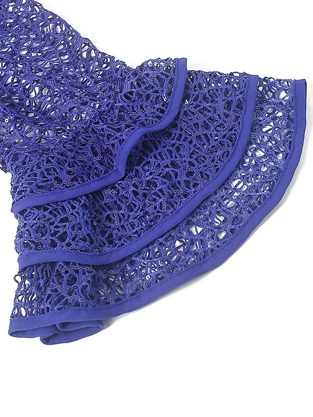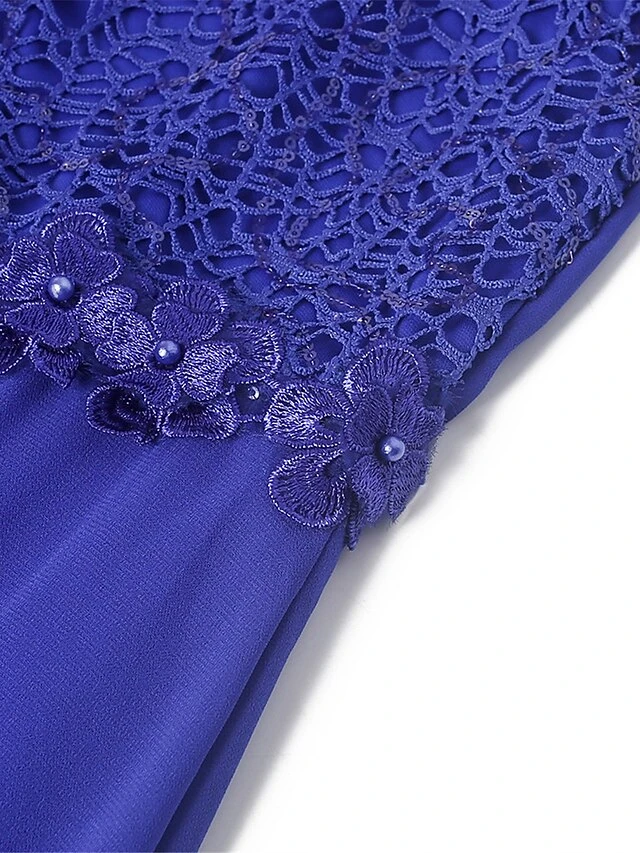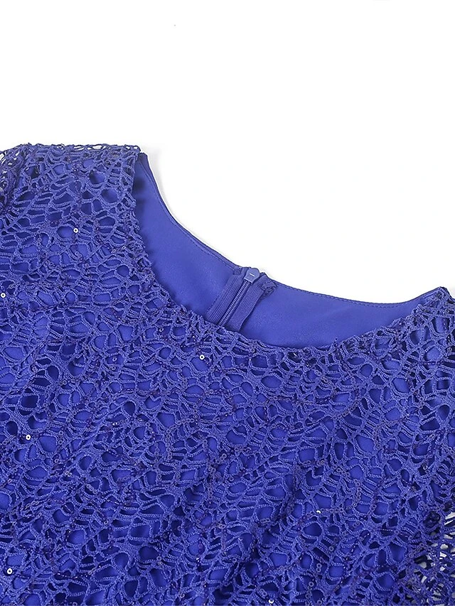Women‘s Plus Size Curve Party Dress Lace Dress Sheath Dress Solid Color Long Dress Maxi Dress 3/4 Length Sleeve Lace Crew Neck Fashion Party Pink Blue Summer Spring L XL XXL 3XL