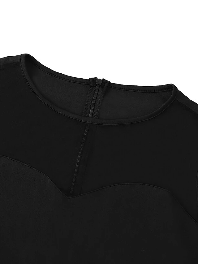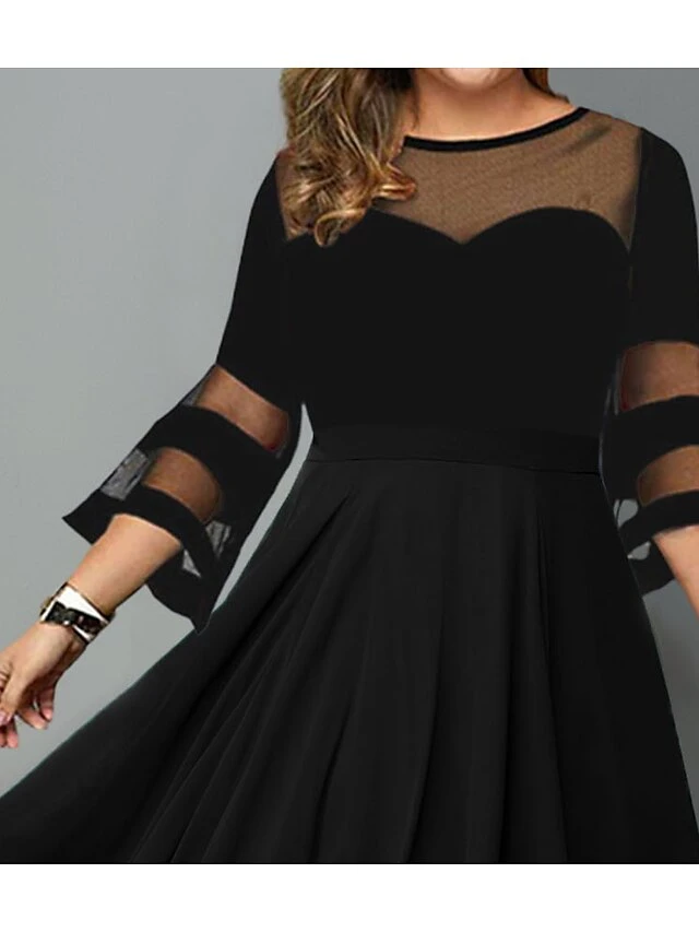Women‘s Plus Size Curve Party Dress Pure Color Crew Neck Mesh 3/4 Length Sleeve Spring Fall Elegant Maxi Long Dress Formal Party Dress