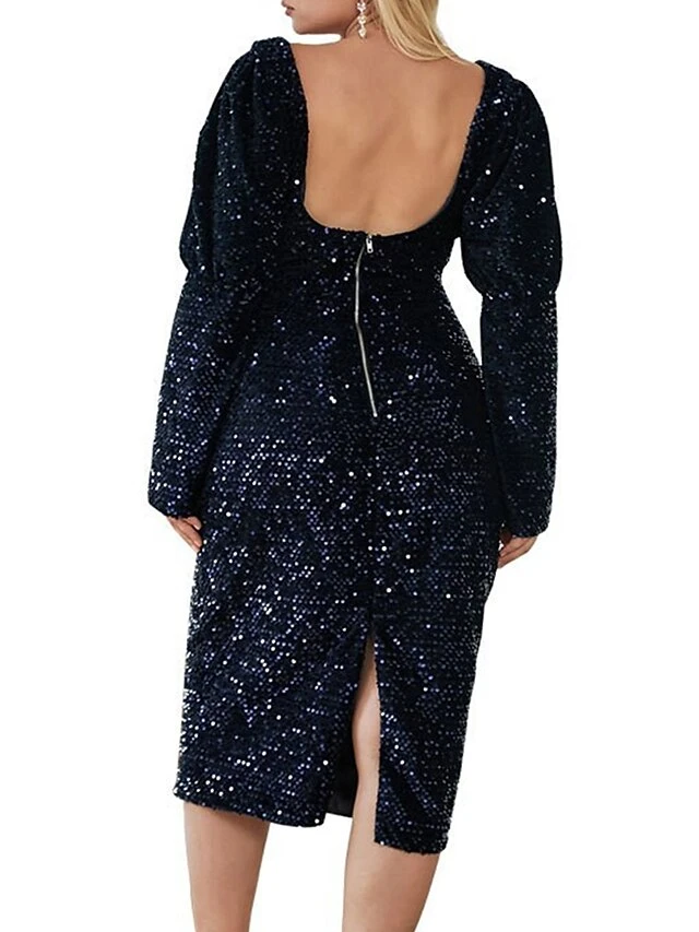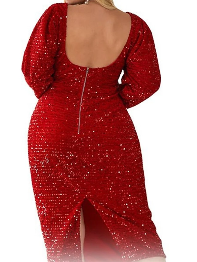Women’s Plus Size Curve Party Dress Sequin Dress Lace Dress Plain Midi Dress Long Sleeve Ruched Crew Neck Fashion Party Black Red Fall Winter XL XXL 3XL 4XL