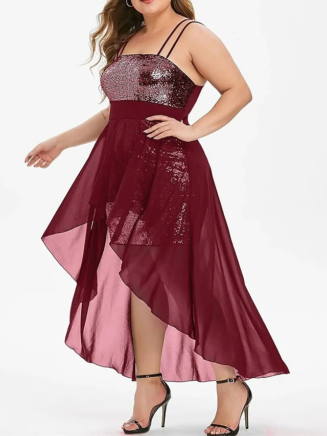 Women‘s Plus Size Curve Party Dress Sequin Dress Slip Dress Sequin Color Block Midi Dress Sleeveless Patchwork Plus High Low Strap Fashion Party Black Wine Summer Spring L XL XXL 3XL 4XL