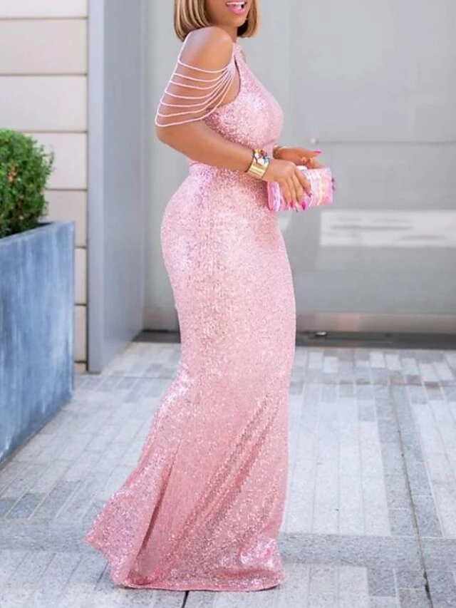 Women‘s Plus Size Curve Party Dress Sequin Dress Solid Color Turtleneck Sequins Sleeveless Spring Fall Elegant Formal Maxi Long Dress Formal Party Dress Sequin Dress