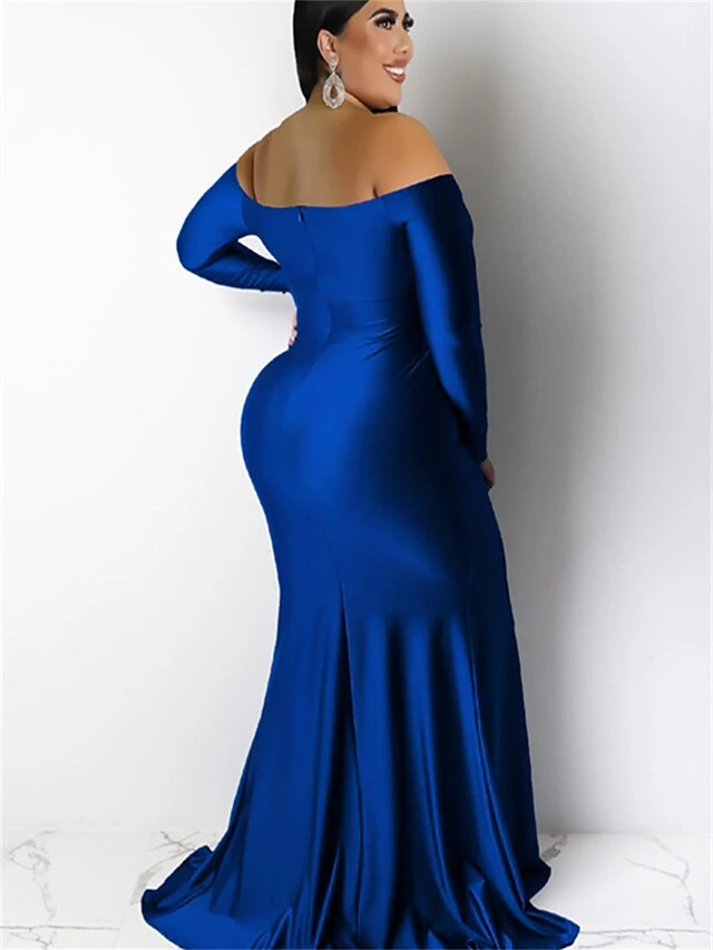 Women‘s Plus Size Curve Party Dress Sheath Dress Swing Dress Solid Color Long Dress Maxi Dress Long Sleeve Split Off Shoulder Fashion Party Black White Winter Fall L XL 3XL 4XL