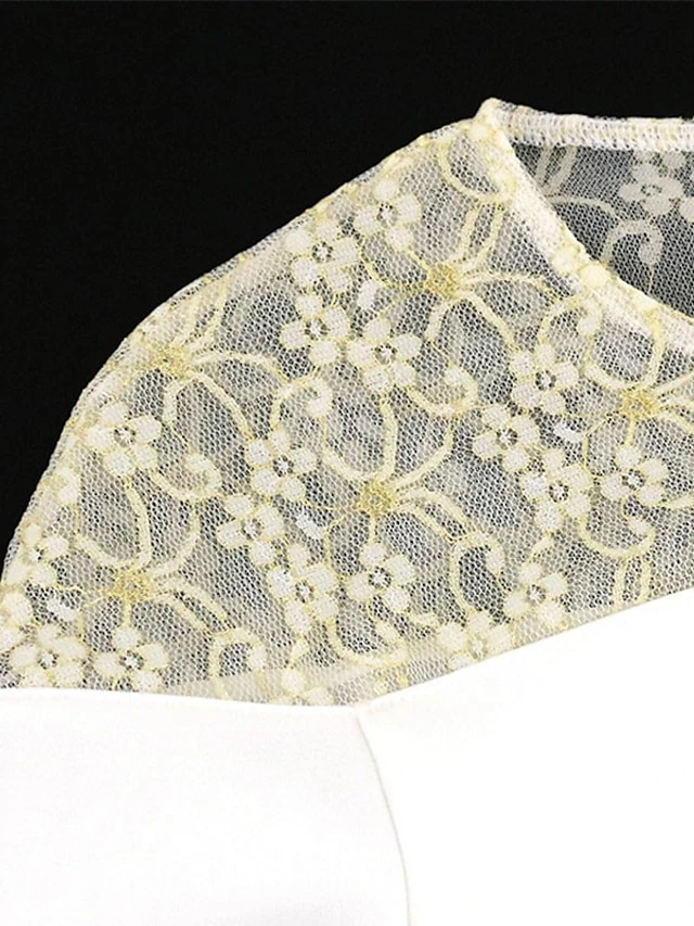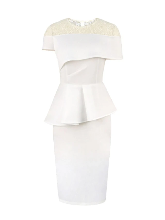 Women‘s Plus Size Curve Party Dress Solid Color Crew Neck Lace Short Sleeve Spring Fall Work Elegant Formal Knee Length Dress Formal Party Dress