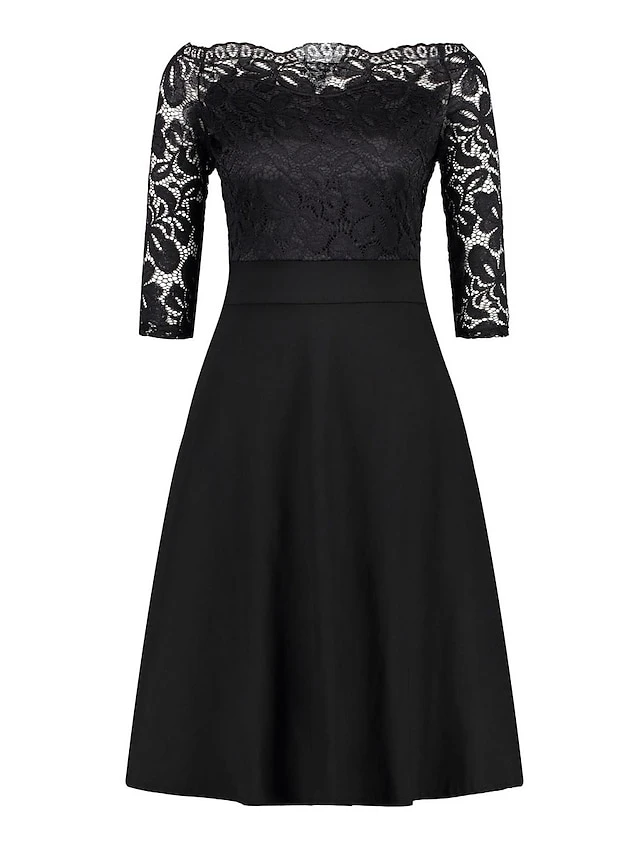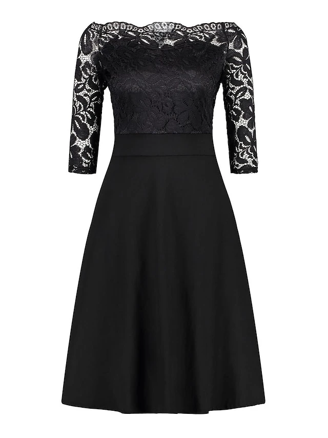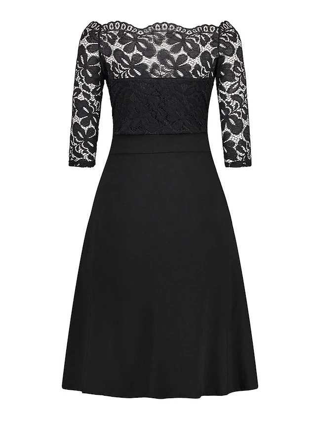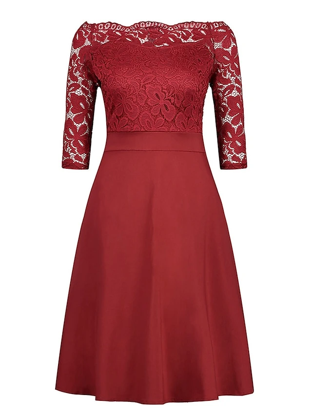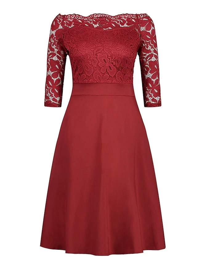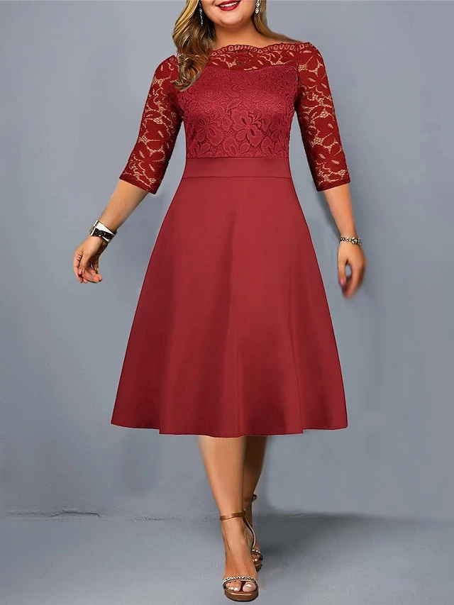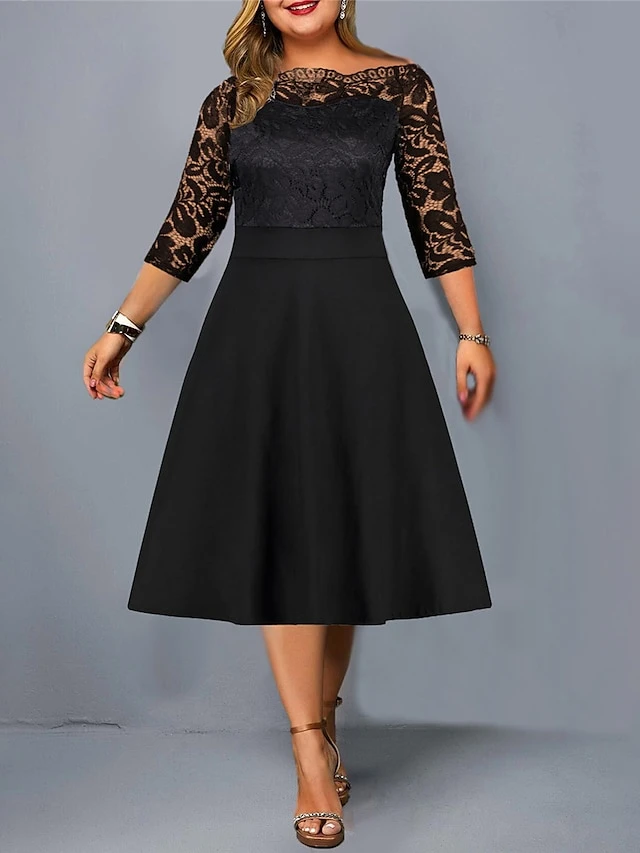 Women‘s Plus Size Curve Party Dress Solid Color Off Shoulder Lace Half Sleeve Summer Spring Elegant Formal Midi Dress Party Cocktail Party Dress