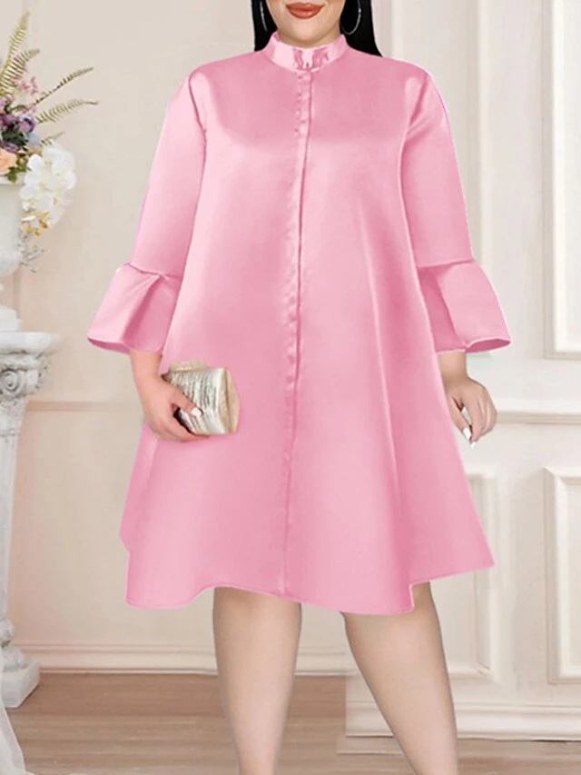 Women‘s Plus Size Curve Party Dress Solid Color Stand Collar Long Sleeve Winter Fall Elegant Formal Mini Dress Party Cocktail Party Dress