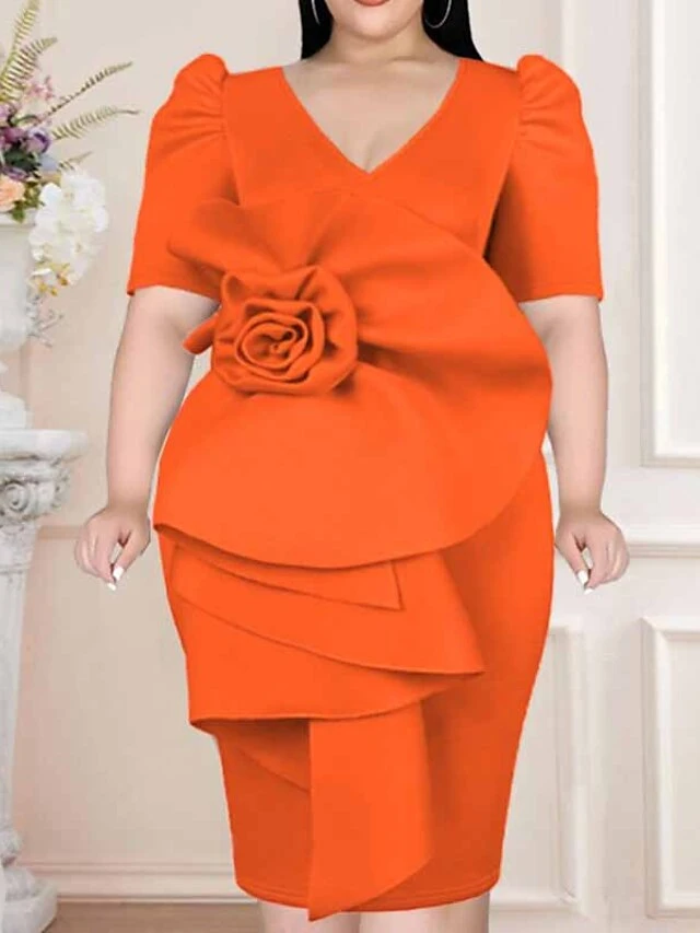 Women‘s Plus Size Curve Party Dress Solid Color V Neck Half Sleeve Spring Fall Elegant Formal Knee Length Dress Formal Party Dress