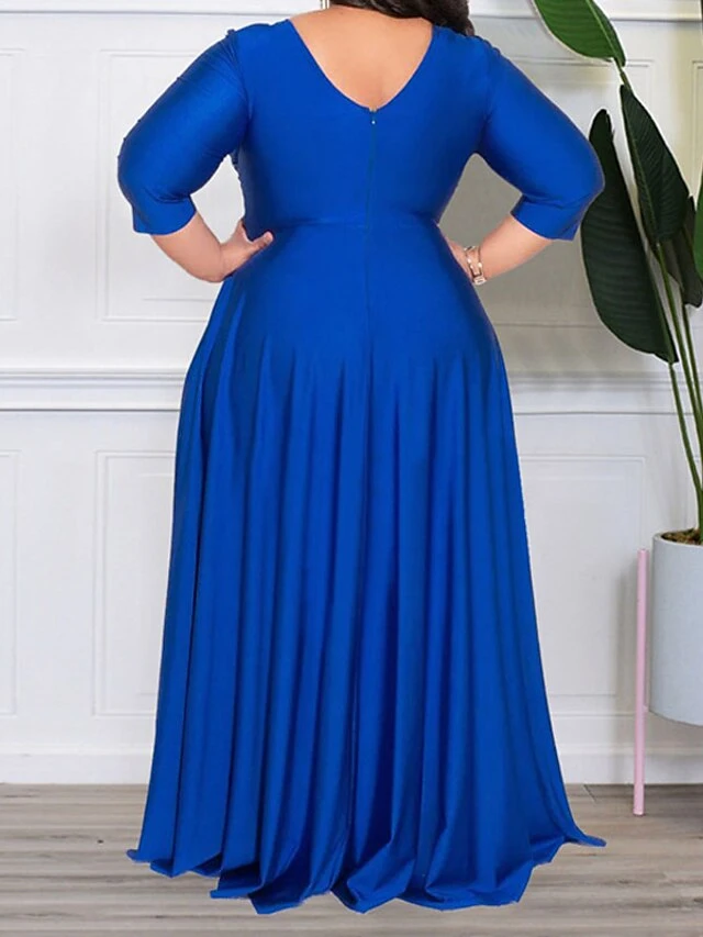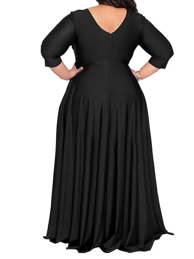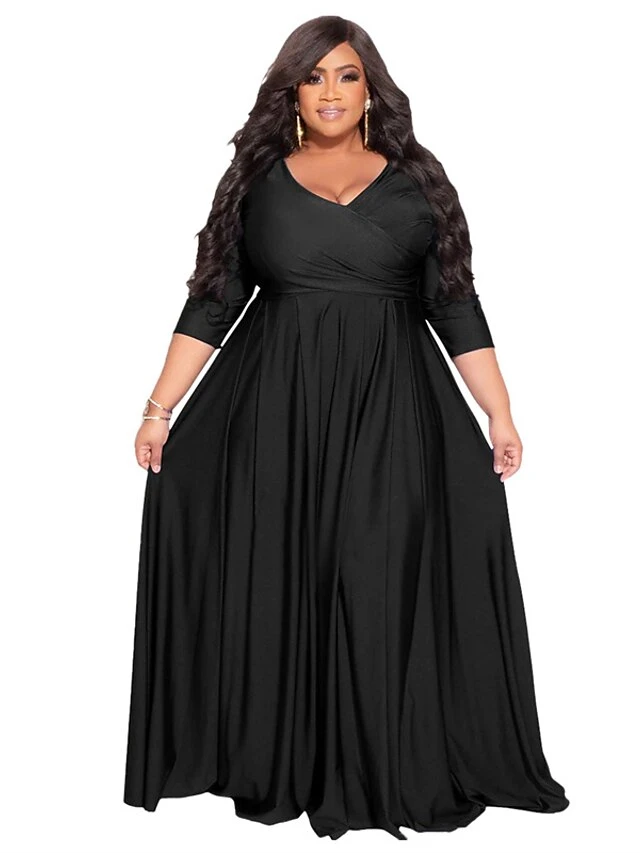 Women‘s Plus Size Curve Party Dress Solid Color V Neck Ruched Long Sleeve Winter Fall Stylish Elegant Maxi Long Dress Formal Party Dress