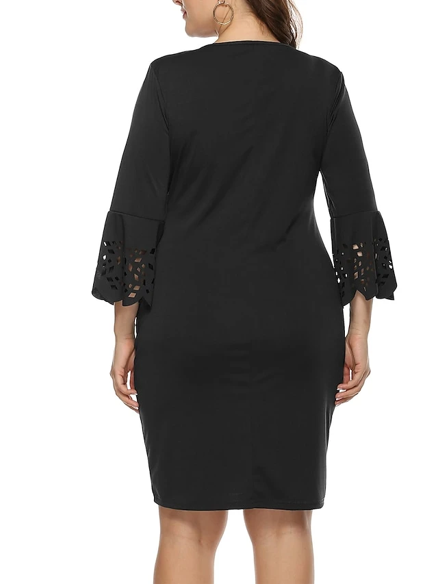 Women‘s Plus Size Curve Party Dress Wedding Guest Dress Black Dress Bodycon Mini Dress Pink 3/4 Length Sleeve Pure Color Patchwork Fall Winter Autumn Crew Neck Fashion Wedding Guest Vacation