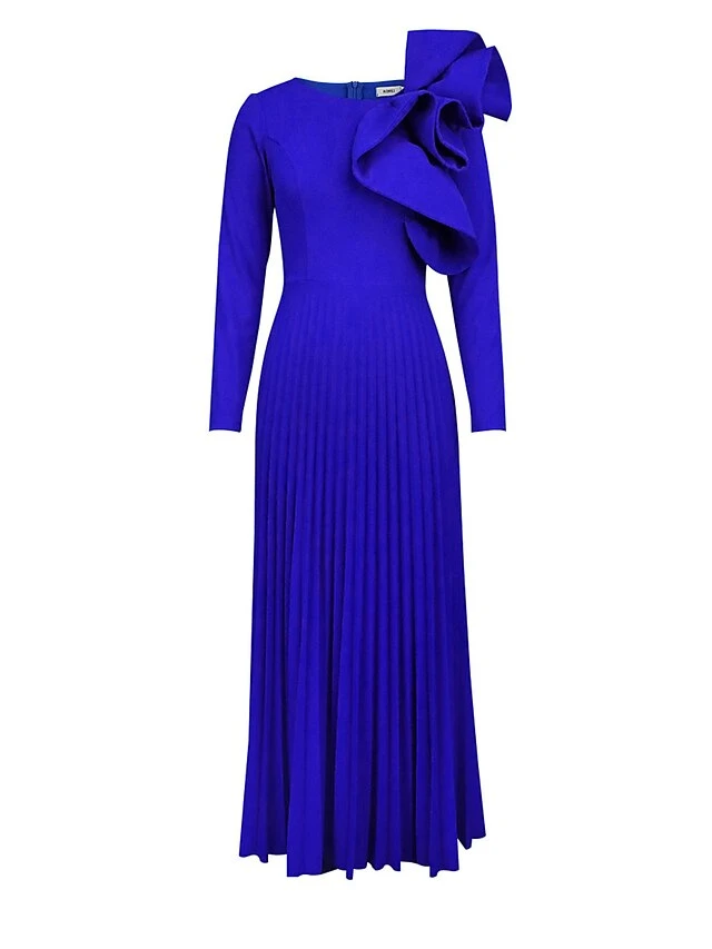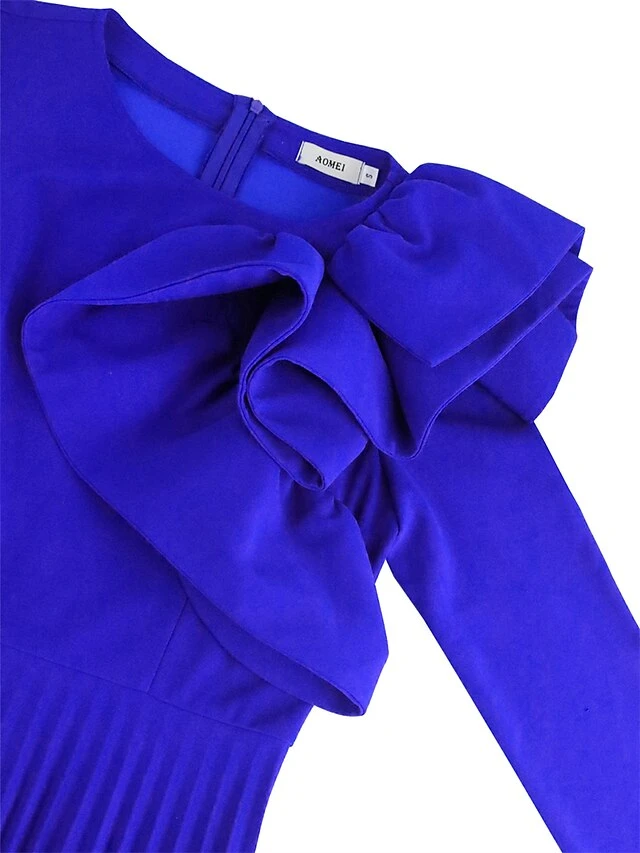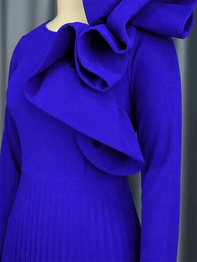Women’s Plus Size Curve Party Dress Work Dress Swing Dress Plain Long Dress Maxi Dress Long Sleeve Pleated Ruffle Crew Neck Fashion Party Blue Fall Winter XL XXL 3XL 4XL