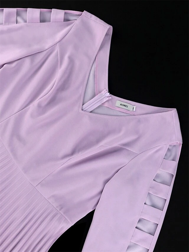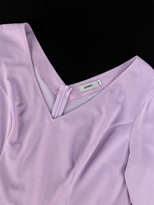 Women’s Plus Size Curve Party Dress Work Dress Swing Dress Plain Midi Dress Long Sleeve Pleated Cut Out V Neck Fashion Party Purple Fall Winter XL XXL 3XL 4XL