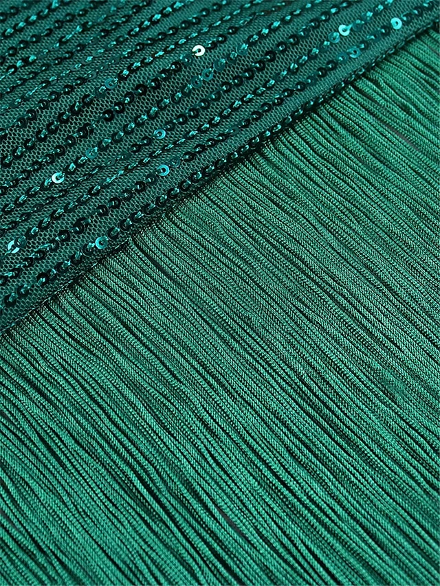Women‘s Plus Size Curve Prom Dress Party Dress Sequin Dress Long Dress Maxi Dress Green Short Sleeve Pure Color Sequins Summer Spring Fall Square Neck Fashion Evening Party Wedding Guest