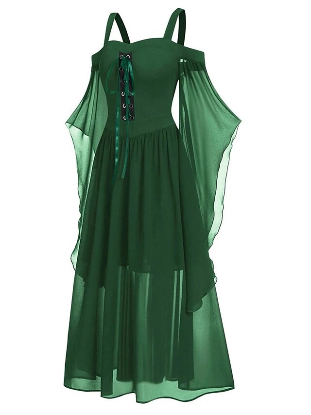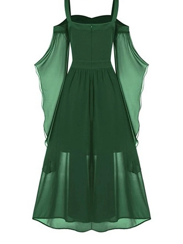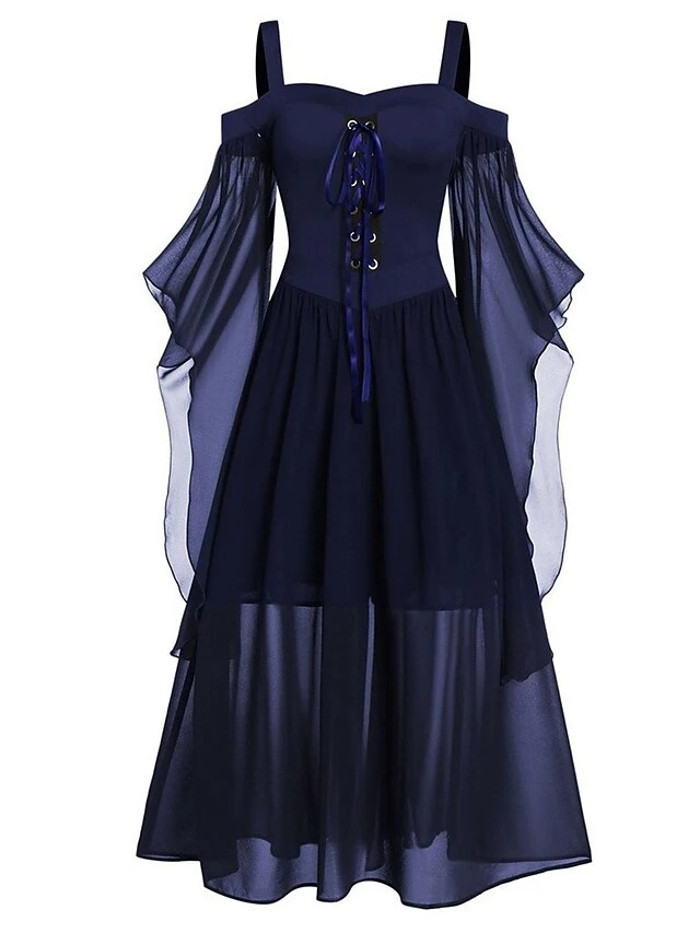 Women’s Plus Size Curve Prom Dress Party Dress Vintage Dress Long Dress Maxi Dress Black Blue Purple Long Sleeve Pure Color Drawstring Spring Fall Winter Spaghetti Strap Vintage Halloween