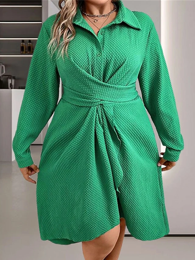 Women’s Plus Size Curve Shirt Dress Casual Dress Plain Midi Dress Long Sleeve Ruched Button Shirt Collar Fashion Outdoor Green Fall Winter L XL XXL 3XL 4XL