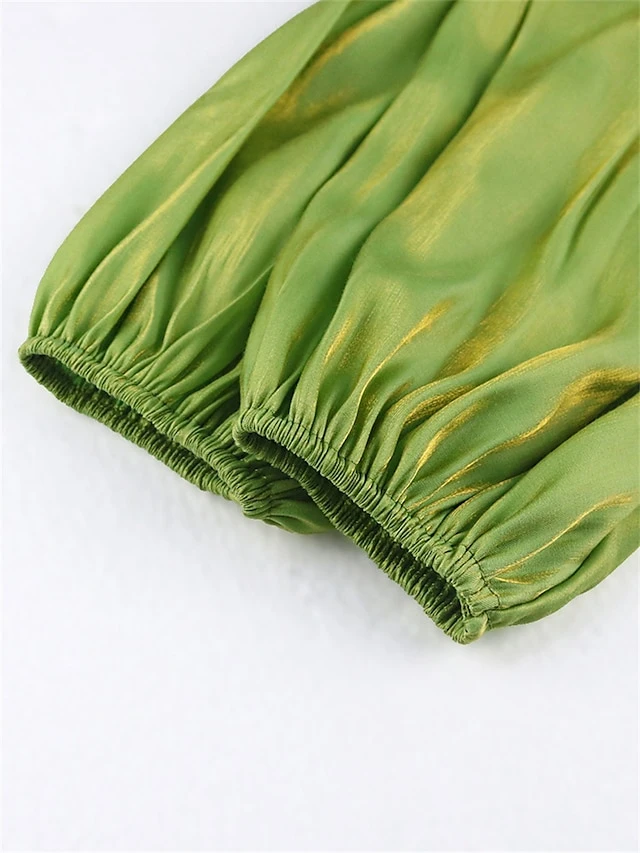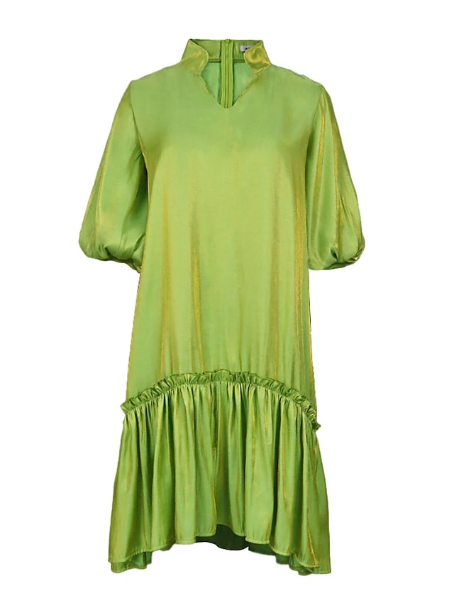 Women’s Plus Size Curve Shirt Dress Casual Dress Satin Dress Plain Midi Dress Half Sleeve Ruched Ruffle V Neck Fashion Daily Green Fall Winter XL XXL 3XL 4XL