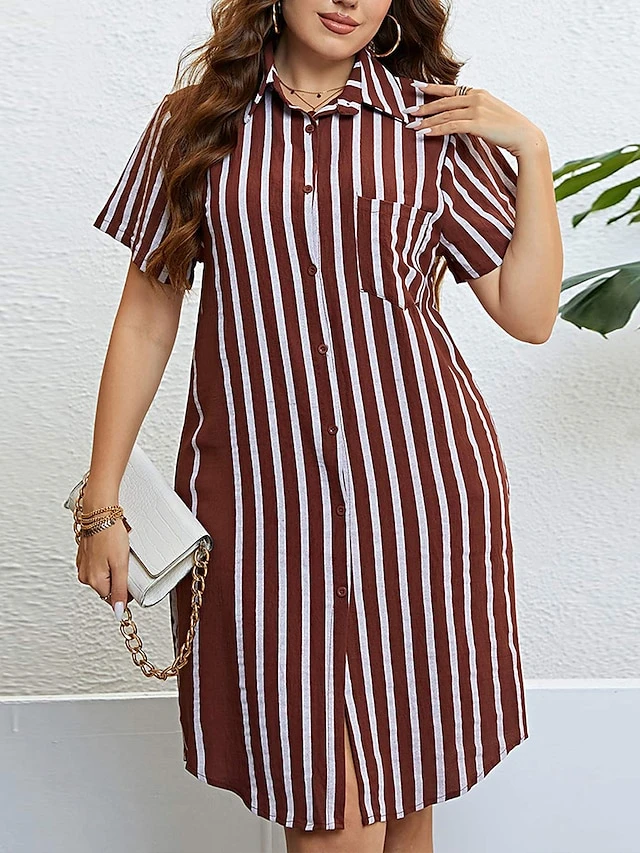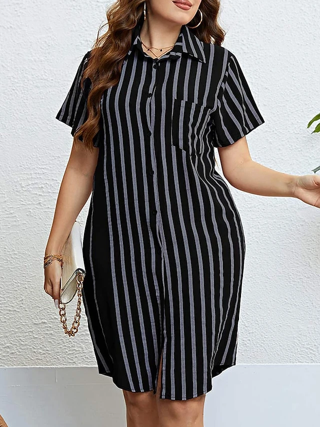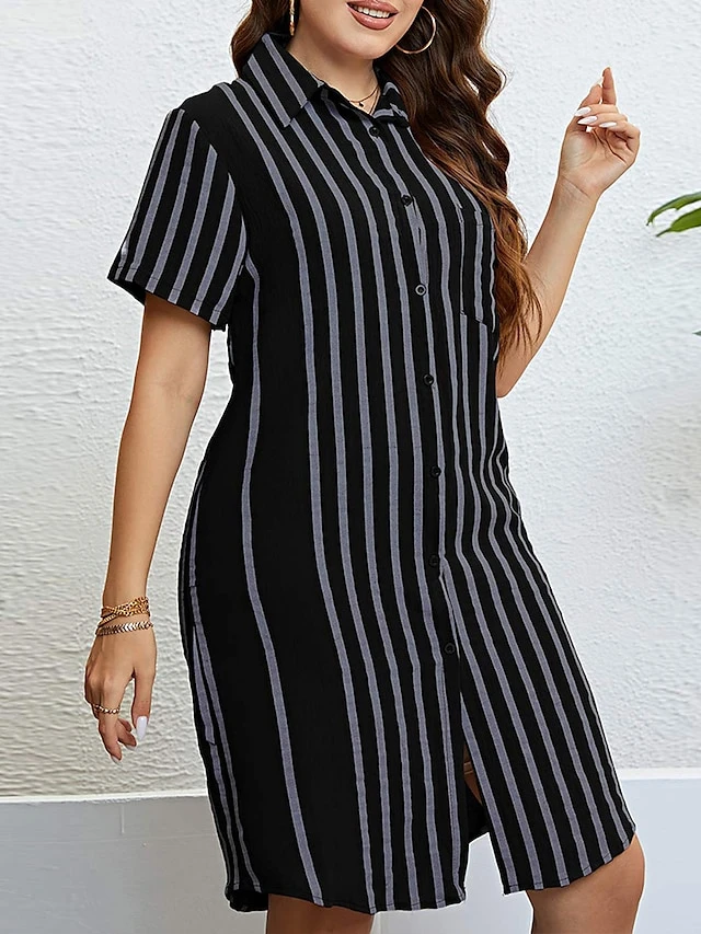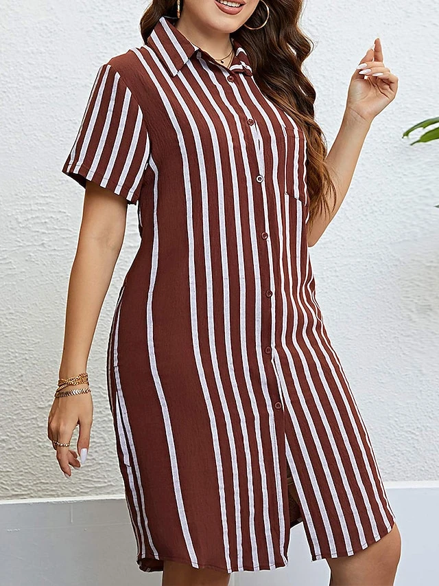 Women‘s Plus Size Curve Shirt Dress Casual Dress Shift Dress Midi Dress Outdoor Daily Vacation Polyester Fashion Modern Shirt Collar Button Pocket Short Sleeve Summer Spring 2023 Regular Fit