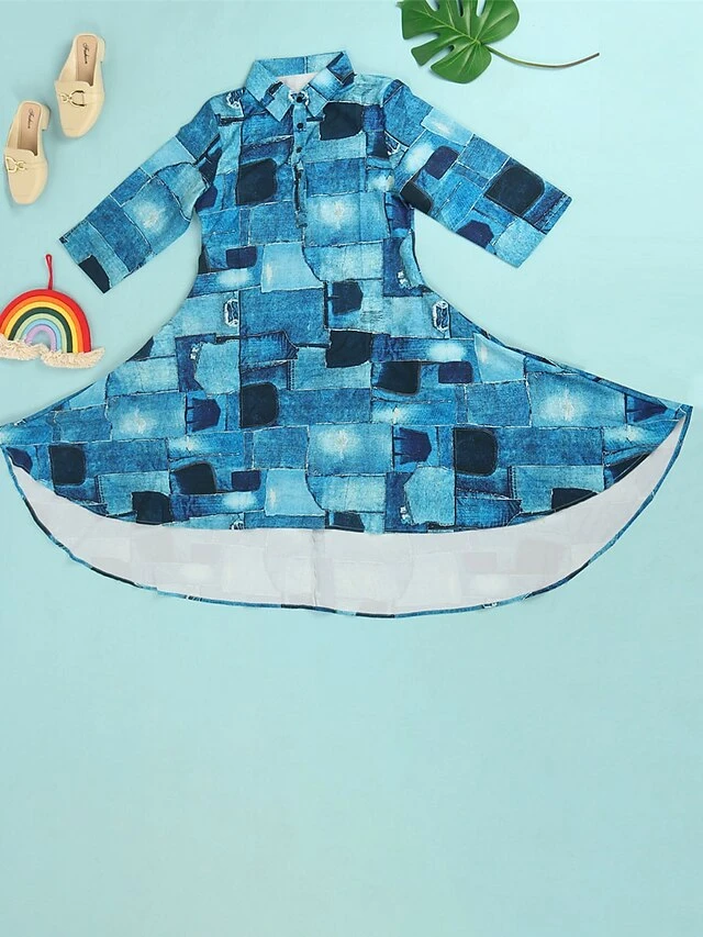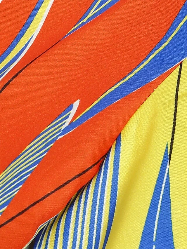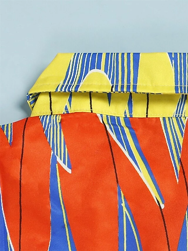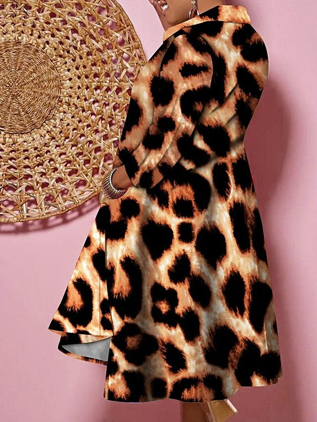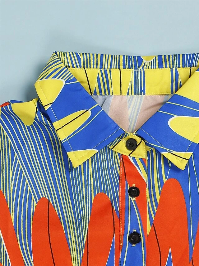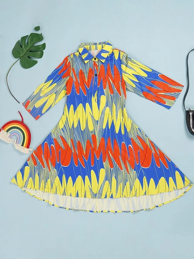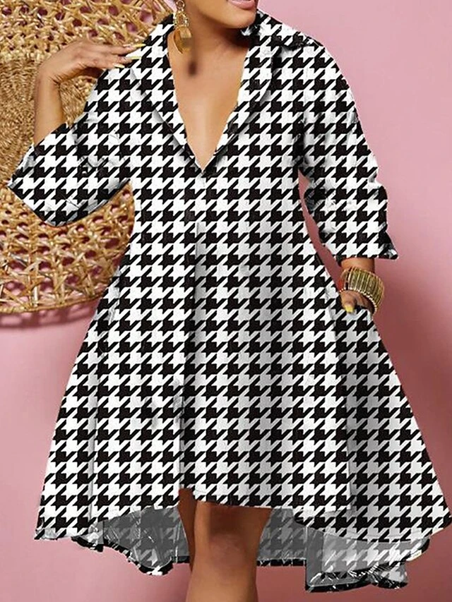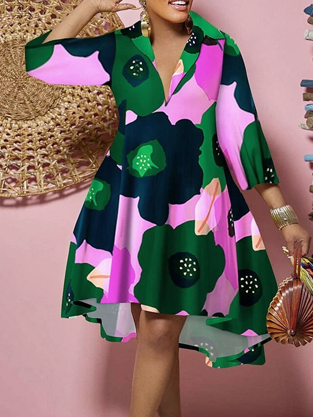 Women’s Plus Size Curve Shirt Dress Casual Dress Swing Dress Floral Geometric Midi Dress 3/4 Length Sleeve Plus High Low Print Shirt Collar Fashion Daily White Yellow Fall Winter L XL XXL 3XL